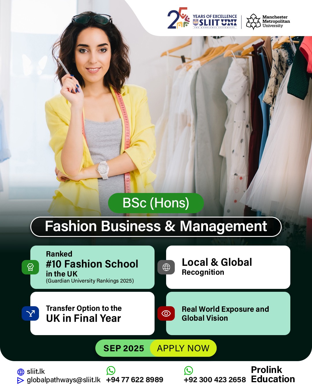 Students will follow the SLIIT curriculum during the first and second years of study, leading to the award of a Higher Diploma qualification comprising 60 SLIIT credits. Upon successful completion of the Higher Diploma, students will be eligible to register with Mancester Metropolitan University for the final year of study, leading to the award of the BSc (Hons) Fashion Business and Management (Top-Up).